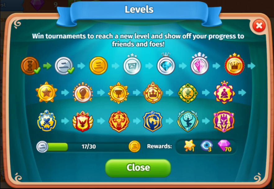 Each time you reach a new level, youβll receive a reward β it could be gems, magic, or other in-game bonuses.